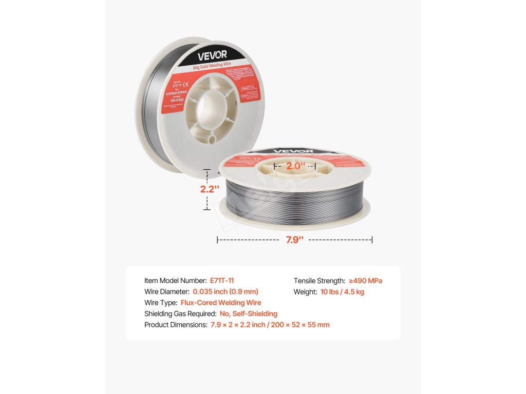 Zvárací drôt s tavivovým jadrom VEVOR 0,035" 10 lbs E71T-11 poskytuje pevné a konzistentné zvary s plynulým podávaním drôtu a nízkym rozstrekom. Podporuje zváranie bez plynu vo všetkých polohách, viacnásobné zváranie a vysokú pevnosť v ťahu pre spoľahlivý výkon v automobilovom priemysle, strojárstve a pri zváracích projektoch pre domácich majstrov.