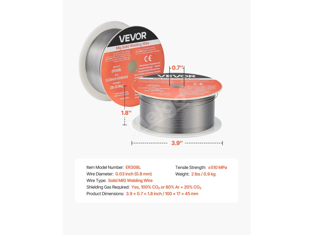 Pevný MIG zvárací drôt VEVOR 0,03" 2 lbs ER308L poskytuje pevné a konzistentné zvary s plynulým podávaním drôtu, nízkym rozstrekom a stabilným oblúkom. Podporuje zváranie vo všetkých polohách a vysokú pevnosť v ťahu pre spoľahlivý výkon v automobilovom priemysle, strojárstve a pri zváracích projektoch pre domácich majstrov.