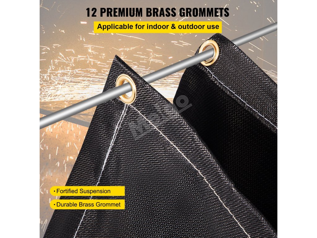 Na podporu hmotnosti prikrývky a zvýšenie jej univerzálnosti je nehorľavá prikrývka vybavená odolnými kovovými priechodkami na všetkých štyroch stranách. Možno ich tak upevniť na vonkajší trávnik pri grilovaní a táborákoch.