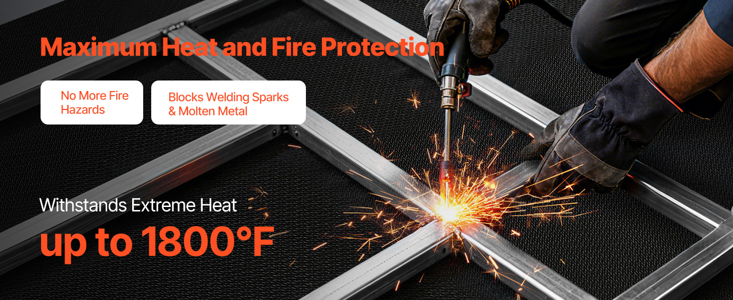 Extrémna ochrana proti vysokým teplotám až do 1800°F, účinne blokuje iskry a roztavený kov, čím eliminuje nebezpečenstvo požiaru a poskytuje maximálnu bezpečnosť vášho zváračského pracoviska.