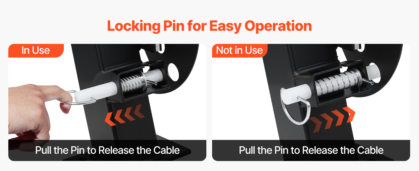 Konštrukcia s poistným kolíkom umožňuje používateľom lepšie riadiť pohyb kábla, čím pomáha znížiť neočakávané pohyby počas prevádzky a skladovania.