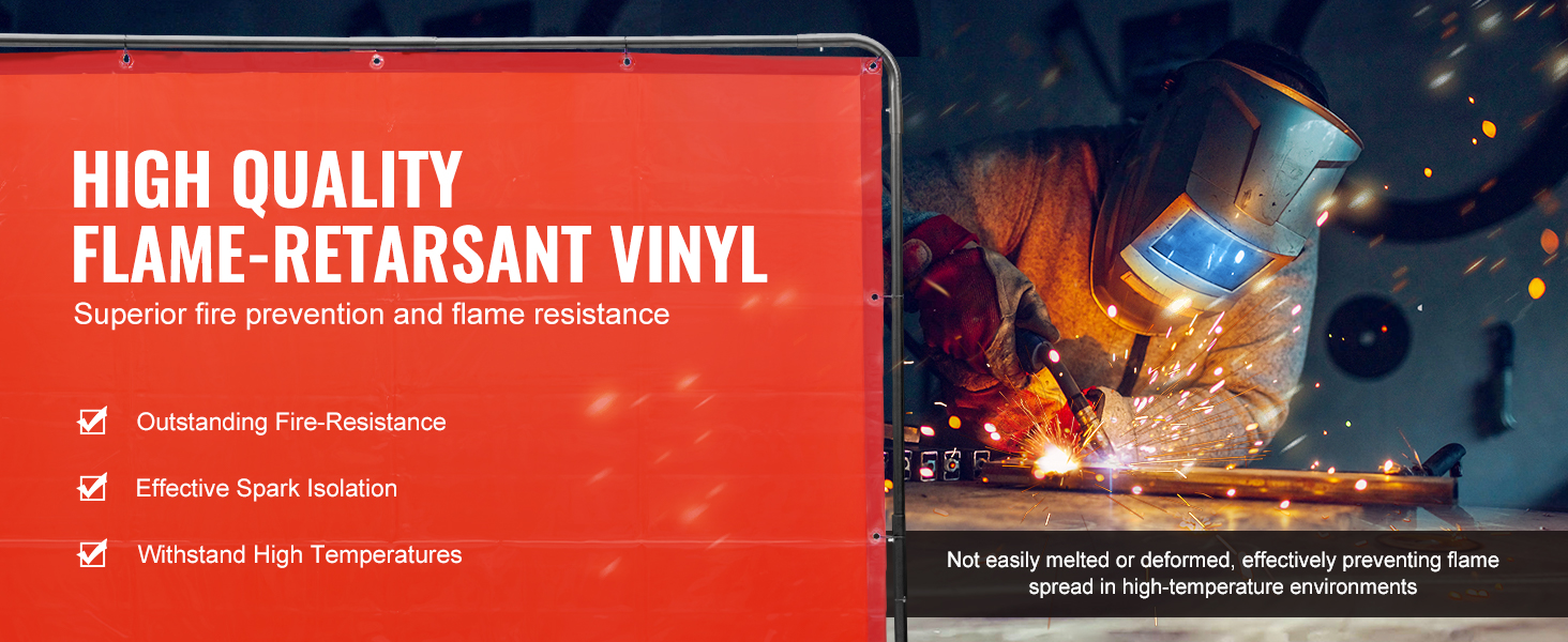 Naša zváracia zástena na kolieskach je vyrobená z prvotriedneho ohňovzdorného vinylového materiálu, ktorý je známy svojou výnimočnou odolnosťou voči taveniu alebo deformácii aj v prostredí s vysokými teplotami. Účinne zabraňuje šíreniu plameňa, čím výrazne zvyšuje bezpečnosť zvárania.
