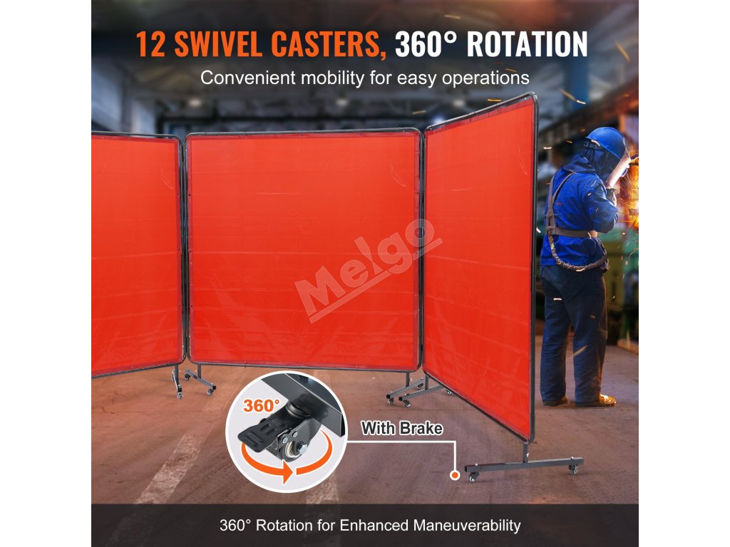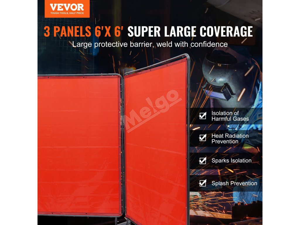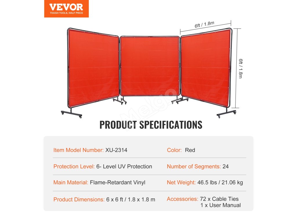 Ste pripravení posunúť bezpečnosť zvárania na vyššiu úroveň? Už nehľadajte ďalej! VEVOR 3-panelová zváracia zástena 6 x 6 FT s rámom je tu, aby ponúkla vynikajúcu odolnosť voči plameňom, 6-stupňovú ochranu proti UV žiareniu, stabilný rám a 12 koliesok otáčajúcich sa o 360°, vďaka čomu je dokonalým spoločníkom pre bezpečný pracovný priestor.