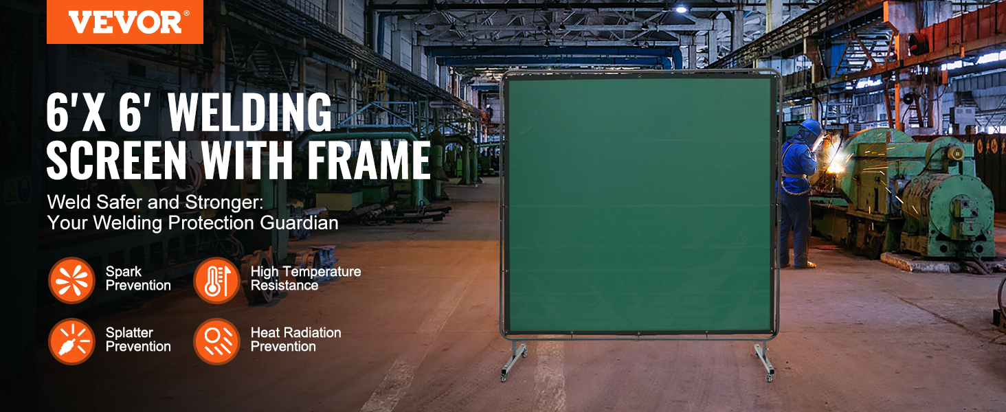 Ste pripravení posunúť bezpečnosť zvárania na vyššiu úroveň? Už nehľadajte ďalej! Zváracia zástena VEVOR 6x6 FT s rámom je tu, aby ponúkla vynikajúcu odolnosť voči plameňom, 6-stupňovú ochranu proti UV žiareniu, stabilný rám a kolieska otáčajúce sa o 360°, vďaka čomu je dokonalým spoločníkom pre bezpečný a efektívny pracovný priestor.