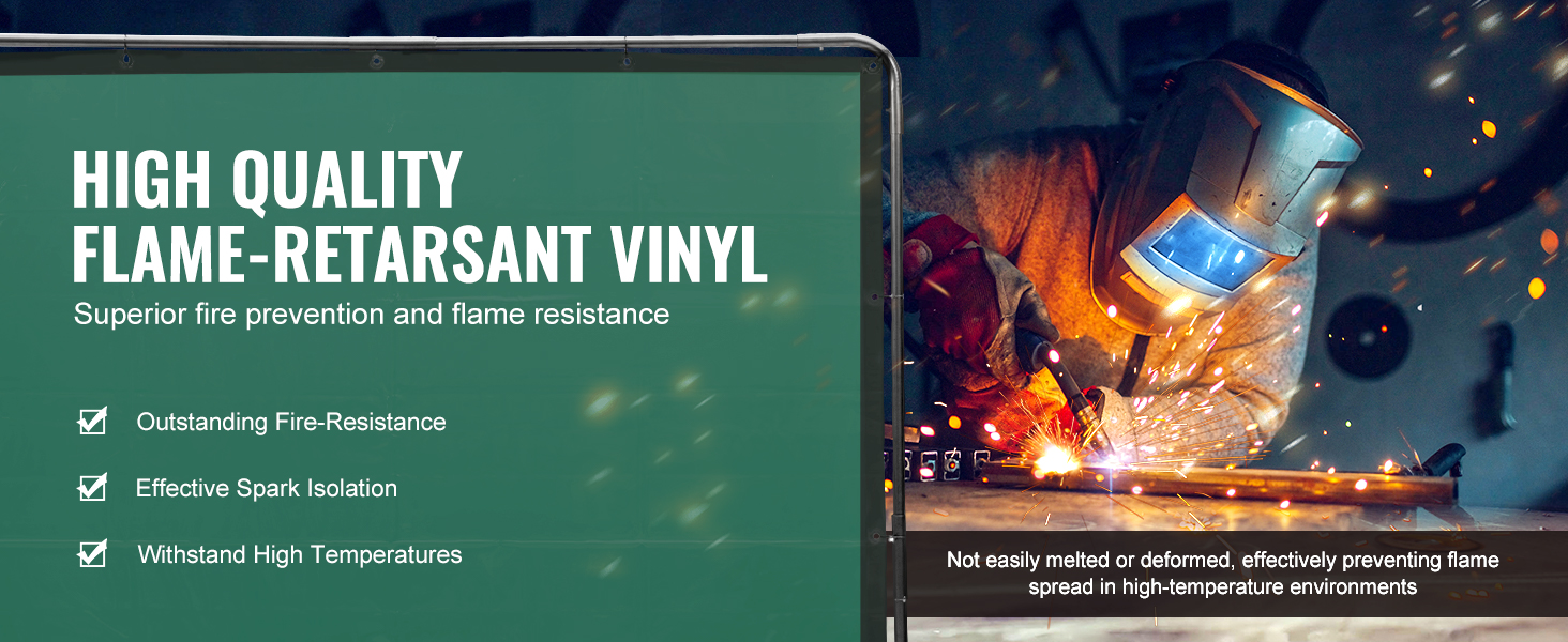 Naša zváracia zástena na kolieskach je vyrobená z prvotriedneho ohňovzdorného vinylového materiálu, ktorý je známy svojou výnimočnou odolnosťou voči taveniu alebo deformácii aj v prostredí s vysokými teplotami. Účinne zabraňuje šíreniu plameňa, čím výrazne zvyšuje bezpečnosť zvárania.