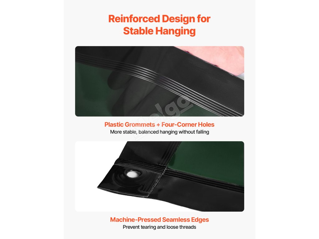 Plastové priechodky a zosilnené rohy zabezpečujú jednoduché nastavenie a stabilné zavesenie bez pádu. Bezšvové strojovo lisované okraje dodávajú zosilnenú pevnosť, ktorá zabraňuje roztrhnutiu a poškodeniu pre vynikajúcu odolnosť.