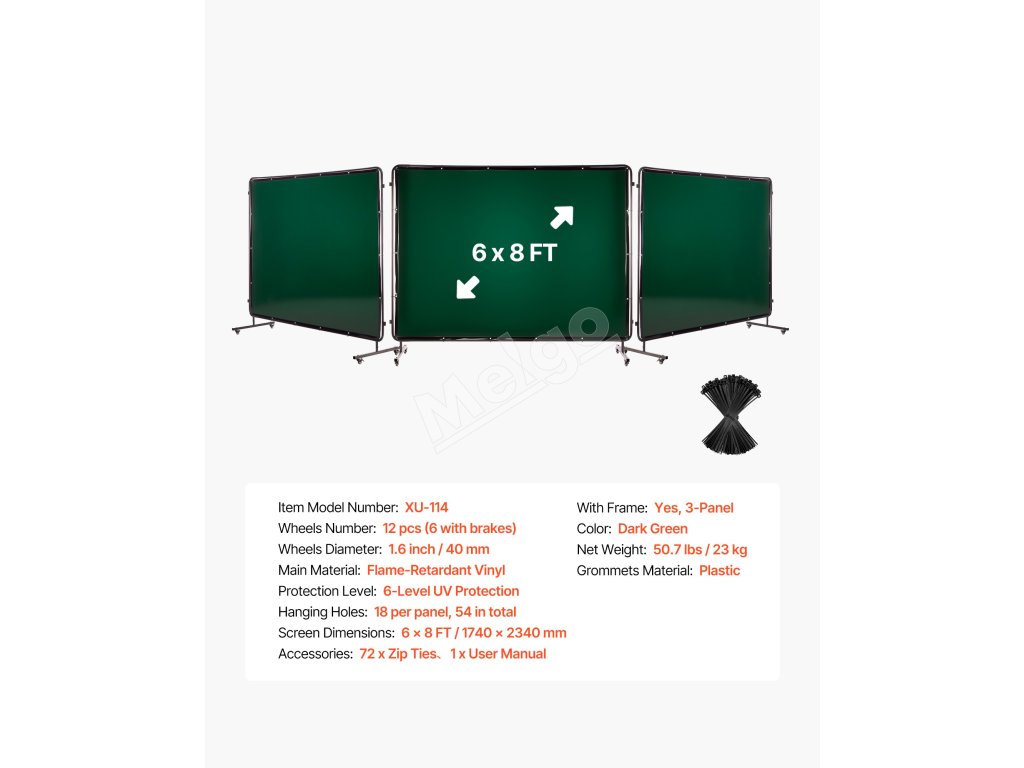 Nedovoľte, aby vašu prácu ovplyvnili vysoké teploty, iskry, roztavený kov alebo postriekanie. Zváracia zástena VEVOR s rámom je navrhnutá tak, aby poskytovala rozsiahlu a spoľahlivú ochranu vo zváračských dielňach, lodeniciach, priemyselných prevádzkach a pod.