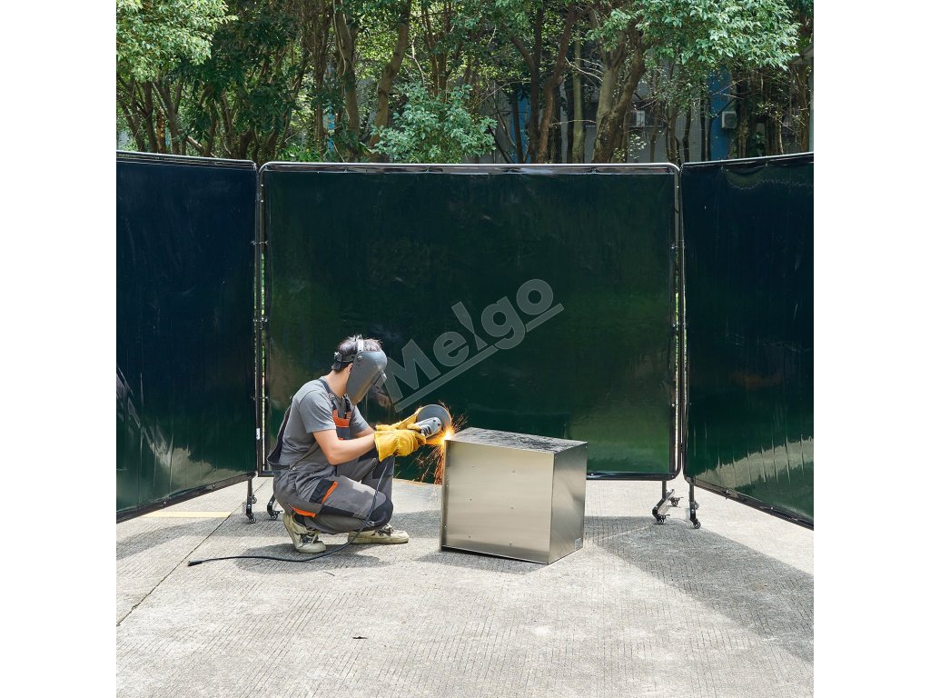 Zváracia clona 3 panely 1.74×2.34m plameňu odolná uv 12 kolies