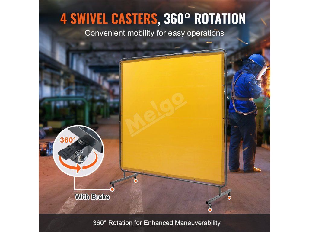 Zváracia clona s rámom 6'×6', nehorľavý vinyl, 4 kolieska, 2 zamknuté