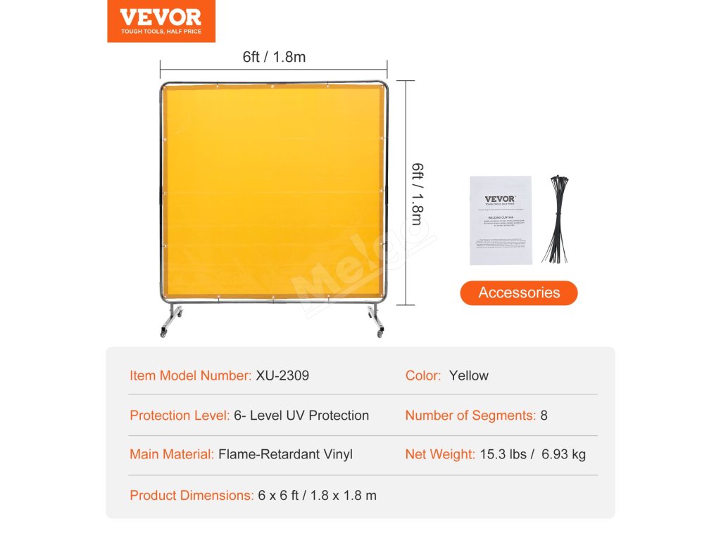 Ste pripravení posunúť bezpečnosť zvárania na vyššiu úroveň? Už nehľadajte ďalej! Zváracia zástena VEVOR 6x6 FT s rámom je tu, aby ponúkla vynikajúcu odolnosť voči plameňom, 6-stupňovú ochranu proti UV žiareniu, stabilný rám a kolieska otáčajúce sa o 360°, vďaka čomu je dokonalým spoločníkom pre bezpečný a efektívny pracovný priestor.