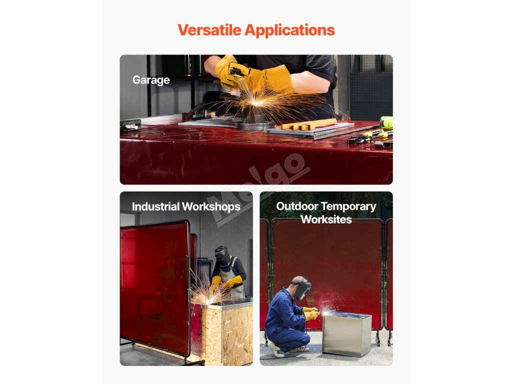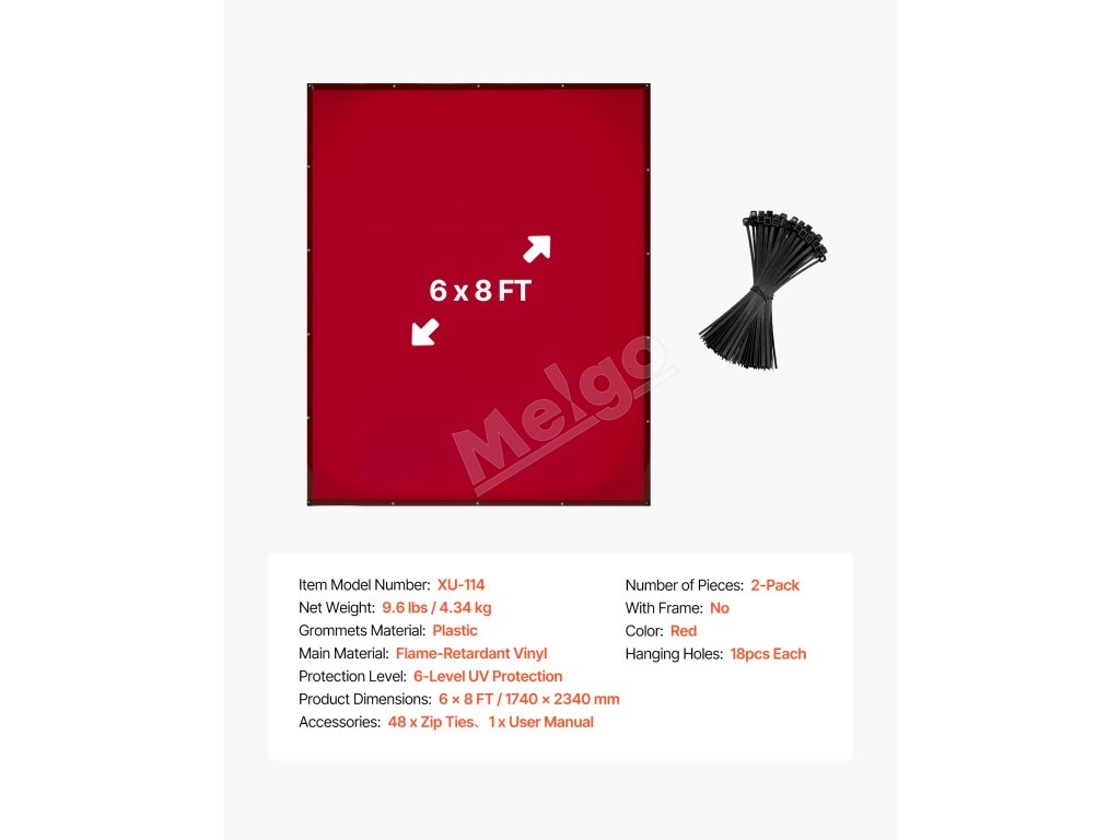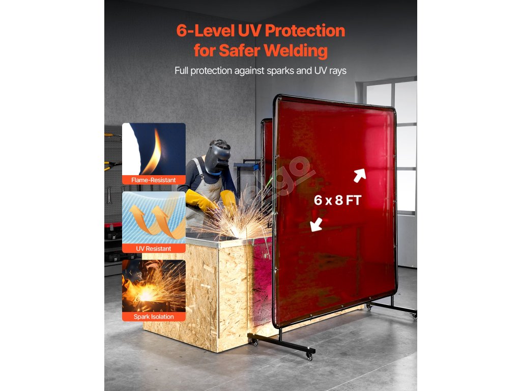 Chráňte seba a svoj pracovný priestor zváracou clonou VEVOR. Dvojdielny bezpečnostný zvárací záves VEVOR s rozmermi 6 x 8 stôp, ktorý je vybavený 6-stupňovou UV ochranou a vyrobený z nehorľavého vinylu, účinne blokuje iskry a striekanie - vytvára bezpečnejší a efektívnejší pracovný priestor.