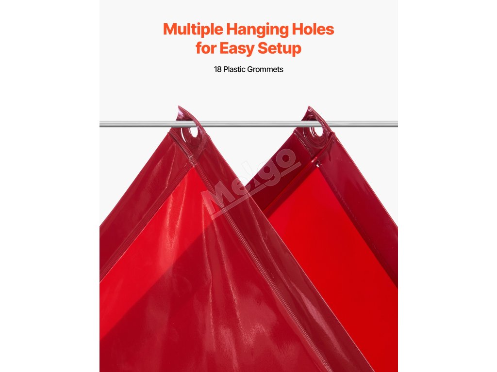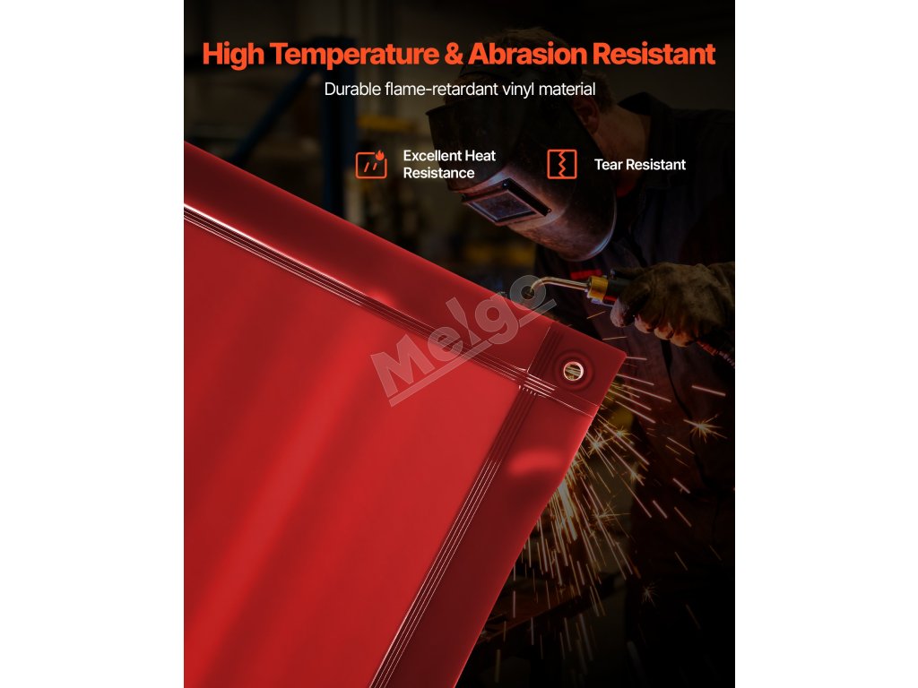 Závesný zvárací záves je vyrobený z odolného, ohňovzdorného vinylu, ktorý zabezpečuje stabilitu a dôslednú ochranu pred teplom, iskrami a oslnením počas zvárania pri vysokých teplotách.