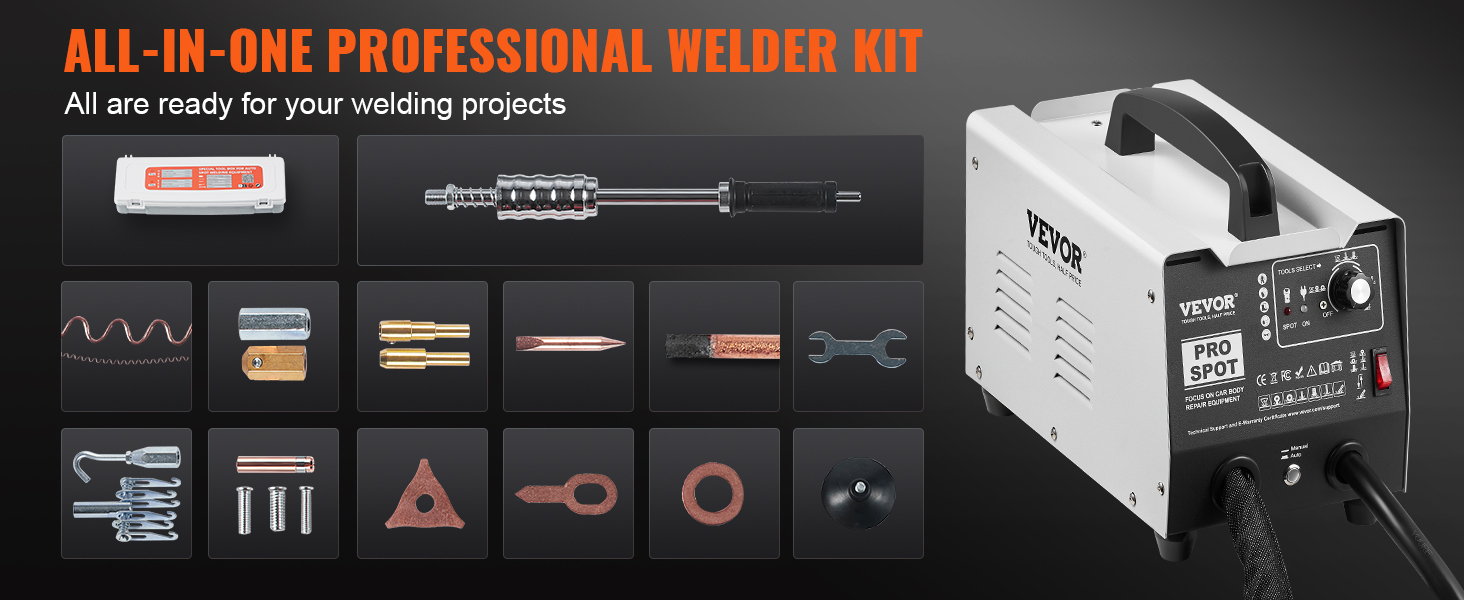 Vďaka výkonnému 1800 W a režimom automatického/manuálneho zvárania poskytuje VEVOR zváračka drážok komplexné riešenie zvárania. Tento všestranný prístroj so 7 funkčnými režimami vyhovuje širokej škále potrieb opráv, vďaka čomu sa stáva nástrojom na profesionálne a efektívne opravy automobilov.