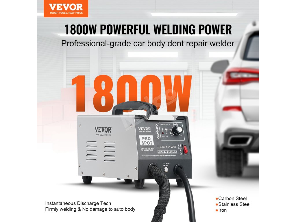 Vďaka výkonnému 1800 W a režimom automatického/manuálneho zvárania poskytuje VEVOR zváračka drážok komplexné riešenie zvárania. Tento všestranný prístroj so 7 funkčnými režimami vyhovuje širokej škále potrieb opráv, vďaka čomu sa stáva nástrojom na profesionálne a efektívne opravy automobilov.