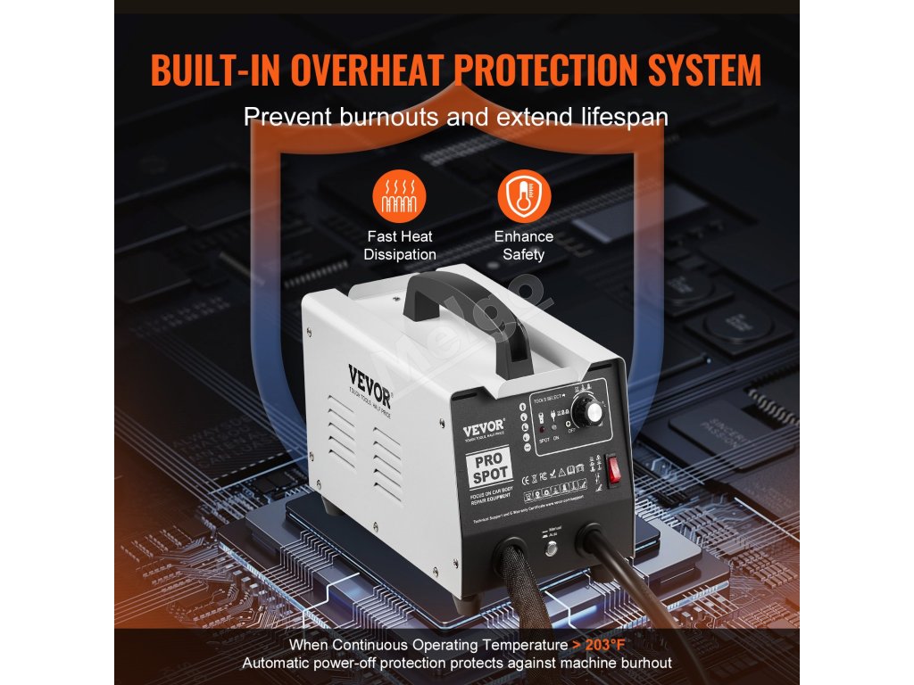 Naša bodová zváračka je vybavená inteligentným systémom ochrany proti prehriatiu, ktorý sa aktivuje, keď teplota prekročí 203℉, čím zabraňuje skratu a poškodeniu stroja. Bočné vetracie otvory tiež zabezpečujú rýchly odvod tepla, vďaka čomu je zváranie bezproblémové a bezpečné.