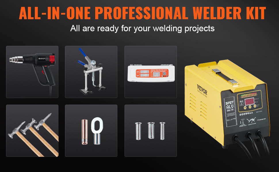 Vďaka výkonu 300 W, automatickému/manuálnemu režimu zvárania a technológii zvárania s kondenzátorom na uskladnenie energie poskytuje VEVOR zváračka drážok komplexné riešenie. Prináša rýchle riešenie na odstraňovanie preliačin z hliníkových panelov karosérie, vďaka čomu sa stáva nástrojom pre profesionálne opravy automobilov.