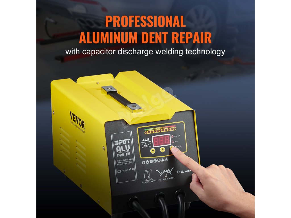 Vďaka výkonu 300 W, automatickému/manuálnemu režimu zvárania a technológii zvárania s kondenzátorom na uskladnenie energie poskytuje VEVOR zváračka drážok komplexné riešenie. Prináša rýchle riešenie na odstraňovanie preliačin z hliníkových panelov karosérie, vďaka čomu sa stáva nástrojom pre profesionálne opravy automobilov.
