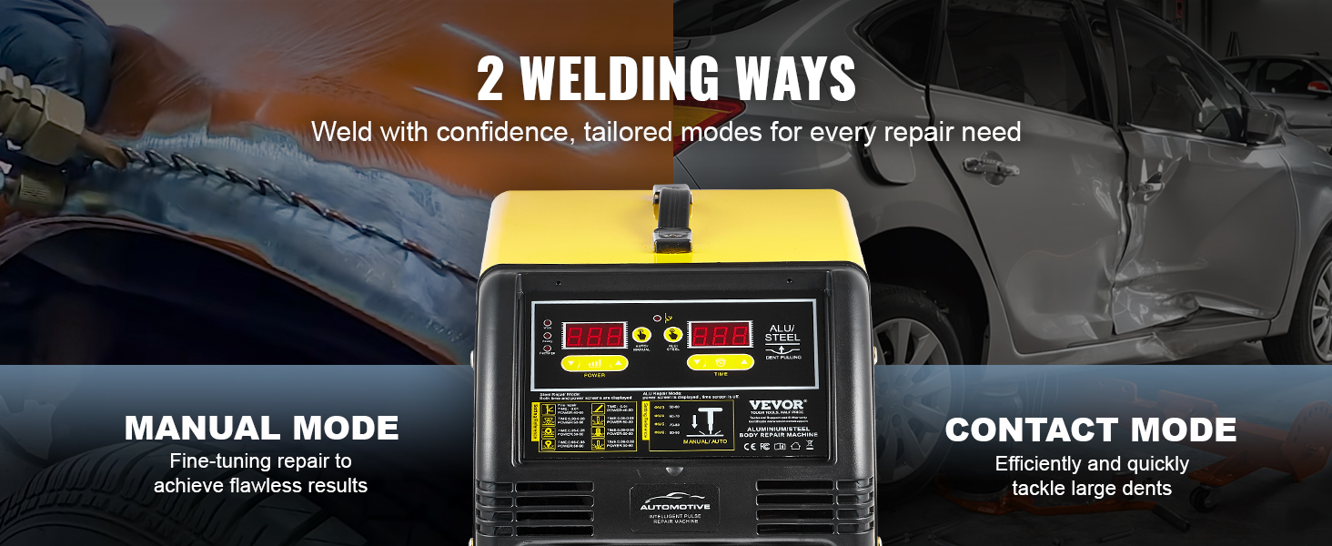 Zvárajte s istotou vďaka prispôsobeným režimom pre každú potrebu opravy. V manuálnom režime máte kontrolu nad jemným dolaďovaním opráv, čo zaručuje bezchybné výsledky pri zložitých úlohách. Prepnite na automatický kontaktný režim pre rýchle a efektívne zvládnutie väčších preliačin.