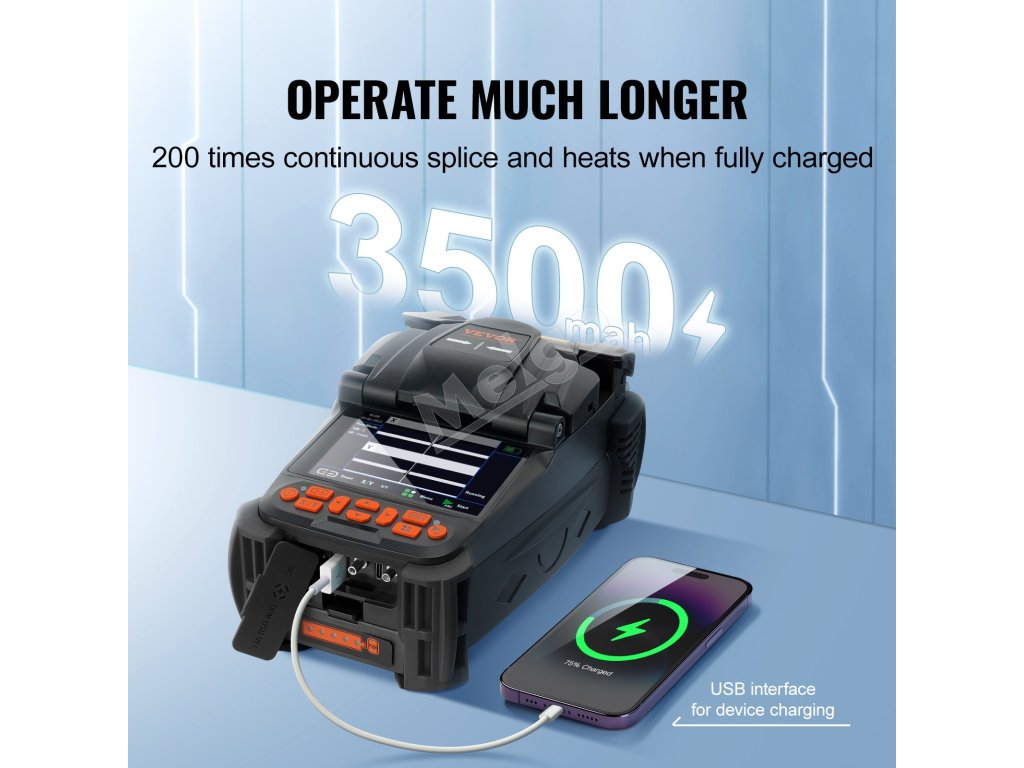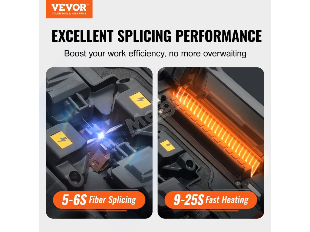 Predstavujeme VEVOR High-end Fiber Fusion Splicer – technológiu zarovnania jadra s automatickým zaostrovaním a 6 vysoko presnými motormi. Dosiahnite bleskovú fúziu za iba 5-6 sekúnd a rýchle zahriatie za 9-25 sekúnd, s fúznou stratou iba 0,01 dB (MM). Presne splňte rôznorodé požiadavky projektov optických vlákien.
