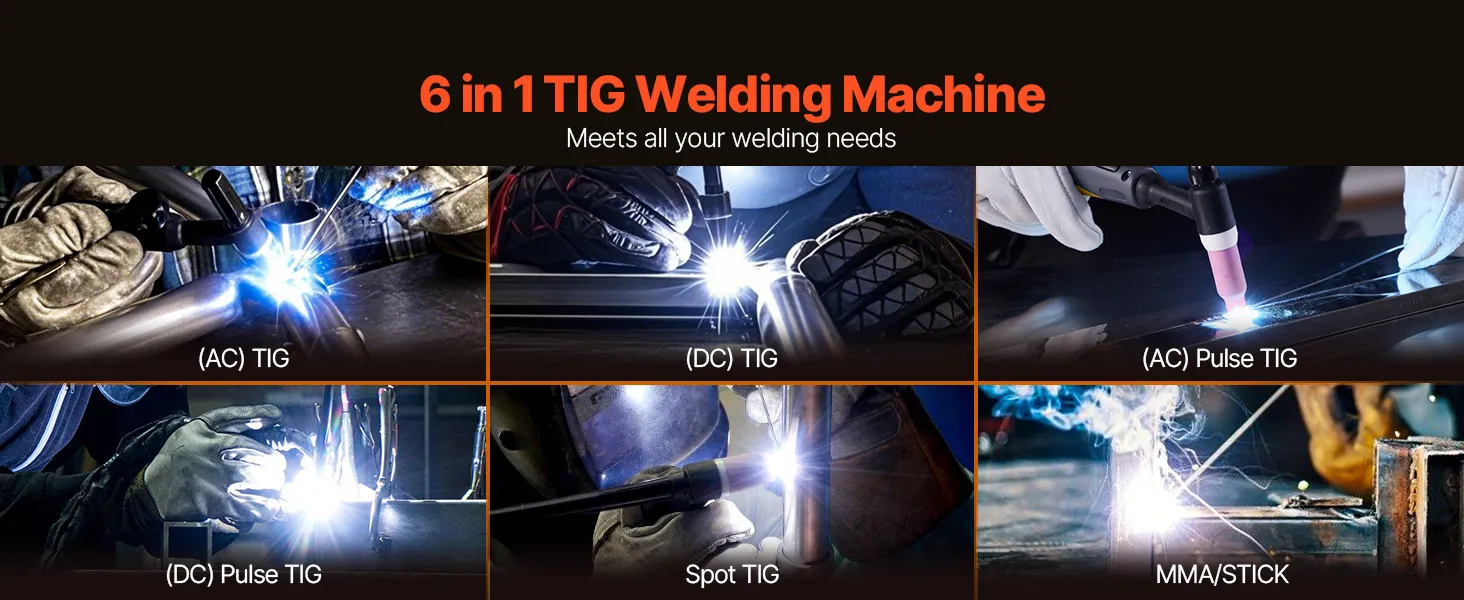 Vylepšite svoje zváracie schopnosti pomocou tohto všestranného zváracieho stroja TIG. Táto elektrická zváračka s režimami AC TIG, DC TIG, AC Pulse TIG, DC Pulse TIG, Spot TIG a MMA/Stick je ideálna na domáce kutilstvo, garážové projekty, vonkajšie opravy a údržbu zariadení.
