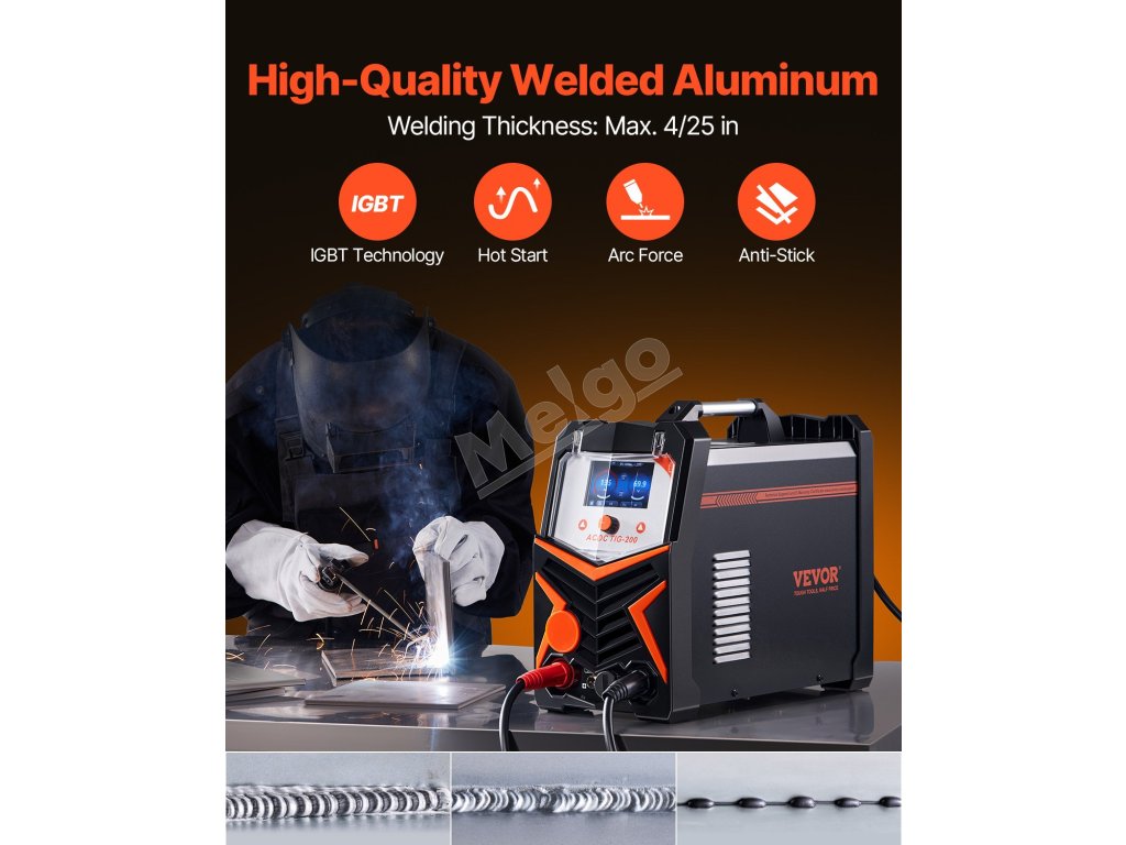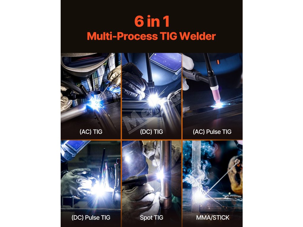 Vylepšite svoje zváracie schopnosti pomocou tohto všestranného zváracieho stroja TIG. Táto elektrická zváračka s režimami AC TIG, DC TIG, AC Pulse TIG, DC Pulse TIG, Spot TIG a MMA/Stick je ideálna na domáce kutilstvo, garážové projekty, vonkajšie opravy a údržbu zariadení.