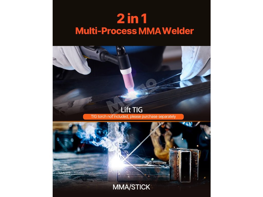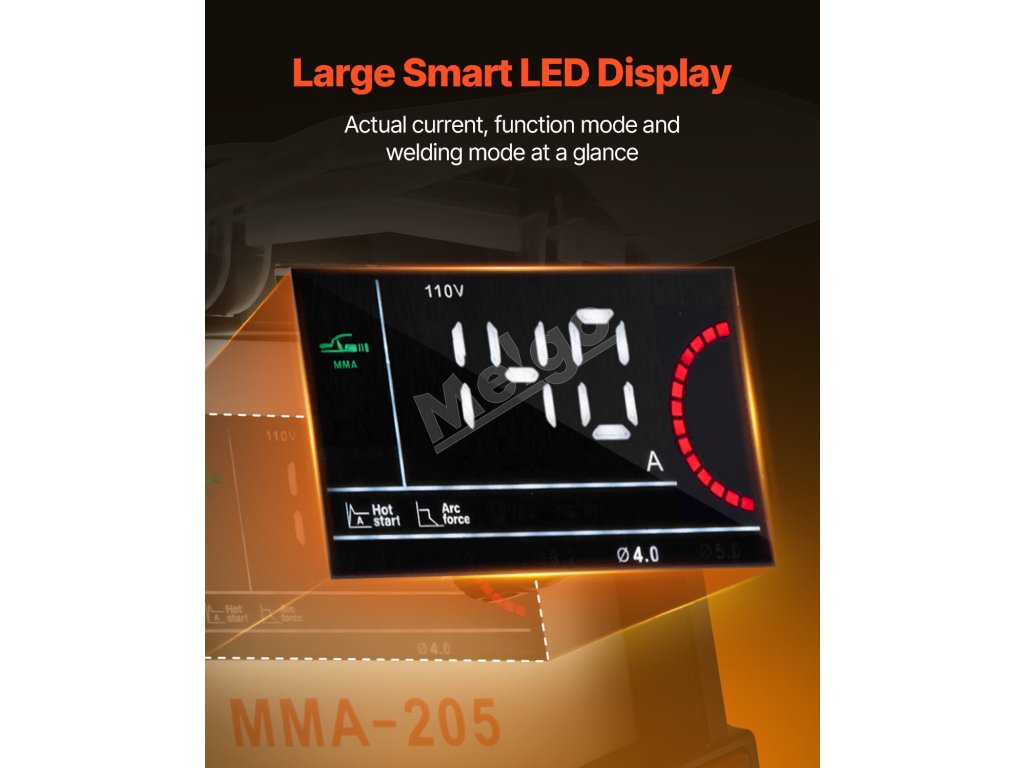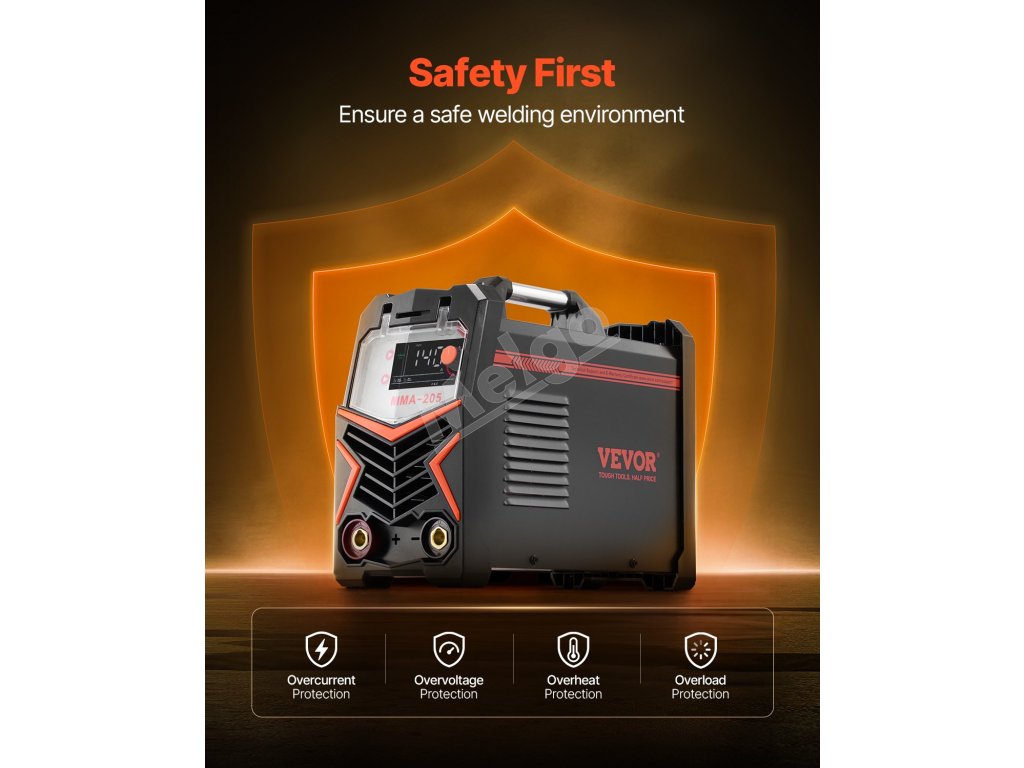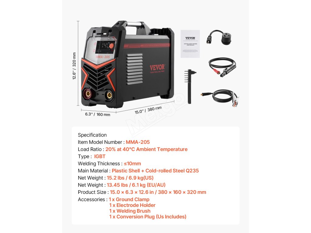 Zváračka VEVOR 205A 2 v 1 MMA je vybavená veľkým displejom LED, invertorom IGBT, horúcim štartom a silou oblúka, ideálna pre domácich majstrov, garážové dielne a opravárenské projekty. UPOZORNENIE: Horák TIG nie je súčasťou dodávky. Ak potrebujete používať funkciu TIG, musíte si horák TIG zakúpiť samostatne.
