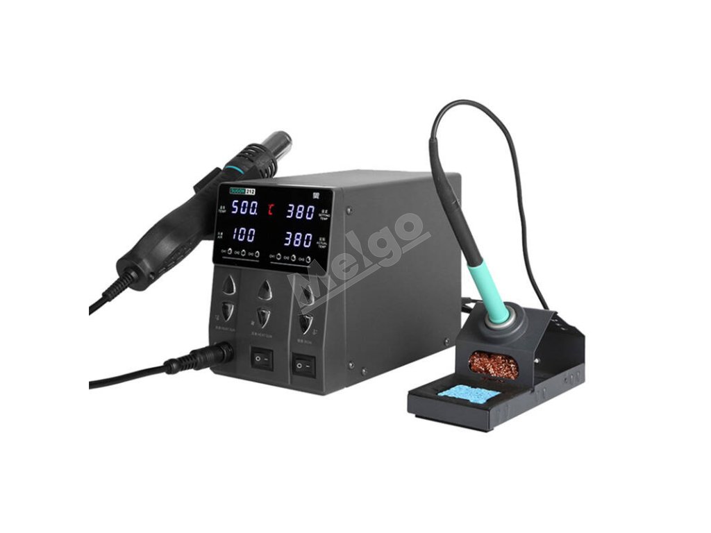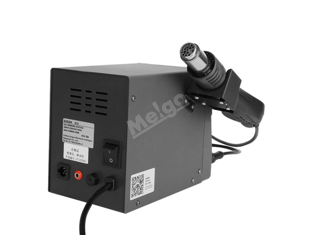 SUGON 212 je zariadenie 2 v 1, ktoré v sebe integruje teplovzdušnú stanicu a spájkovačku v tvare banky. To umožňuje komplexný prístup k opravám a montáži elektroniky, pričom ponúka presné spájkovanie chronosúčiastok aj rýchle odpájkovanie alebo montáž SMD súčiastok. Vďaka tomu je stanica ideálna pre servisy elektroniky, montážne dielne a domácich majstrov.