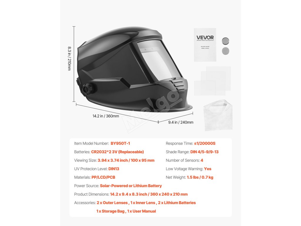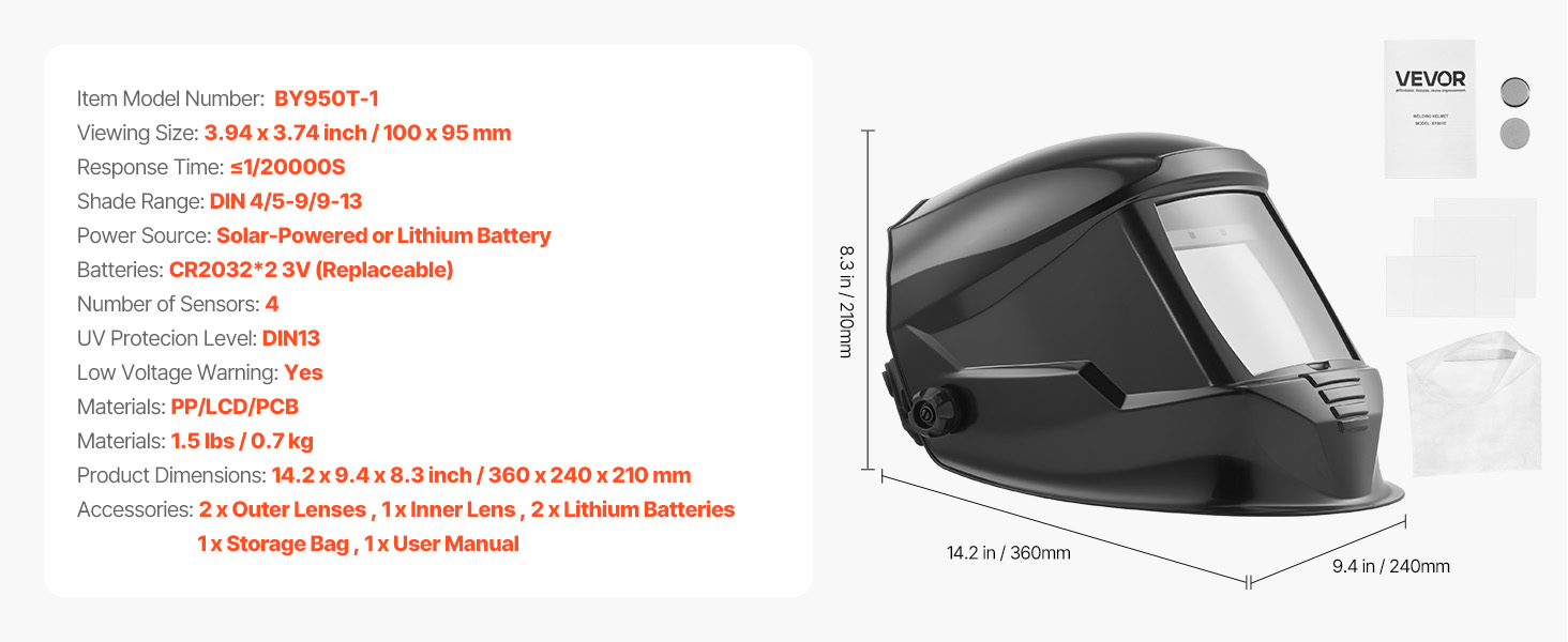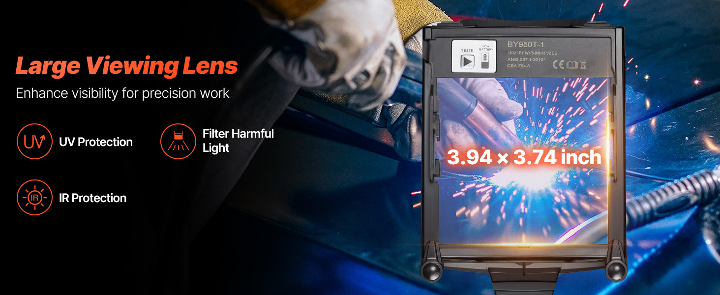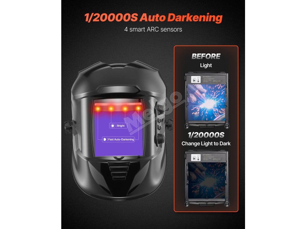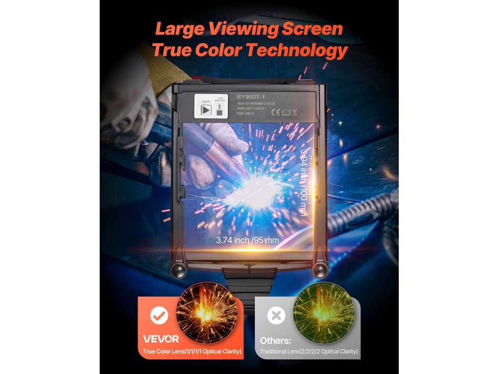 Zváračská prilba VEVOR s automatickým stmievaním má široký rozsah odtieňov DIN 4/5-9/9-13, technológiu verných farieb a 4 oblúkové senzory, ktoré poskytujú jasnejší a prirodzenejší pohľad. Účinne filtruje škodlivé svetlo, znižuje únavu očí a zabezpečuje bezpečnejšie brúsenie, zváranie a rezanie.
