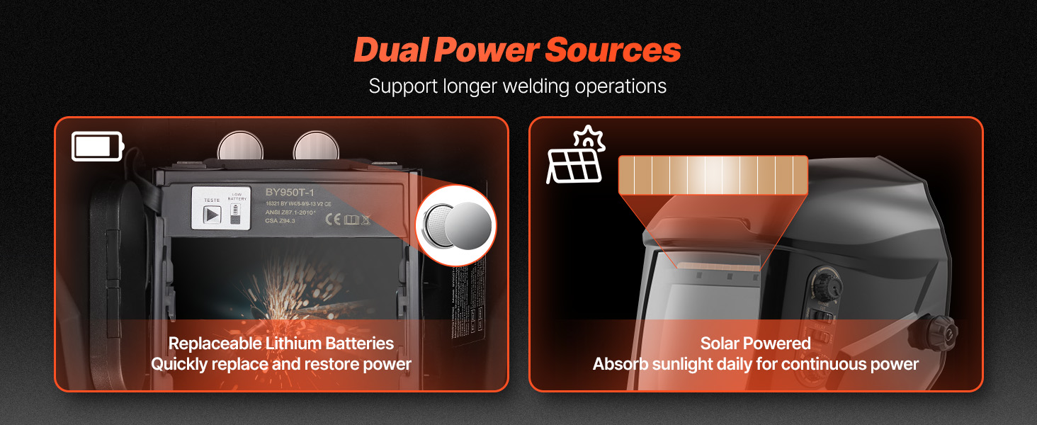 Vďaka podpore solárneho nabíjania aj napájania lítiovou batériou poskytuje naša zváracia kukla true color zváračom dlhodobú a spoľahlivú podporu napájania pre nepretržitú prevádzku.