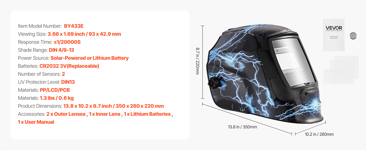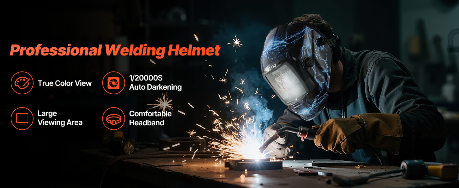 Zváračská prilba VEVOR s automatickým stmievaním má široký rozsah odtieňov DIN 4/9-13, technológiu verných farieb a 2 snímače oblúka, ktoré poskytujú jasnejší a prirodzenejší zážitok z pohľadu. Účinne filtruje škodlivé svetlo, znižuje únavu očí a zabezpečuje bezpečnejšie brúsenie a zváranie.