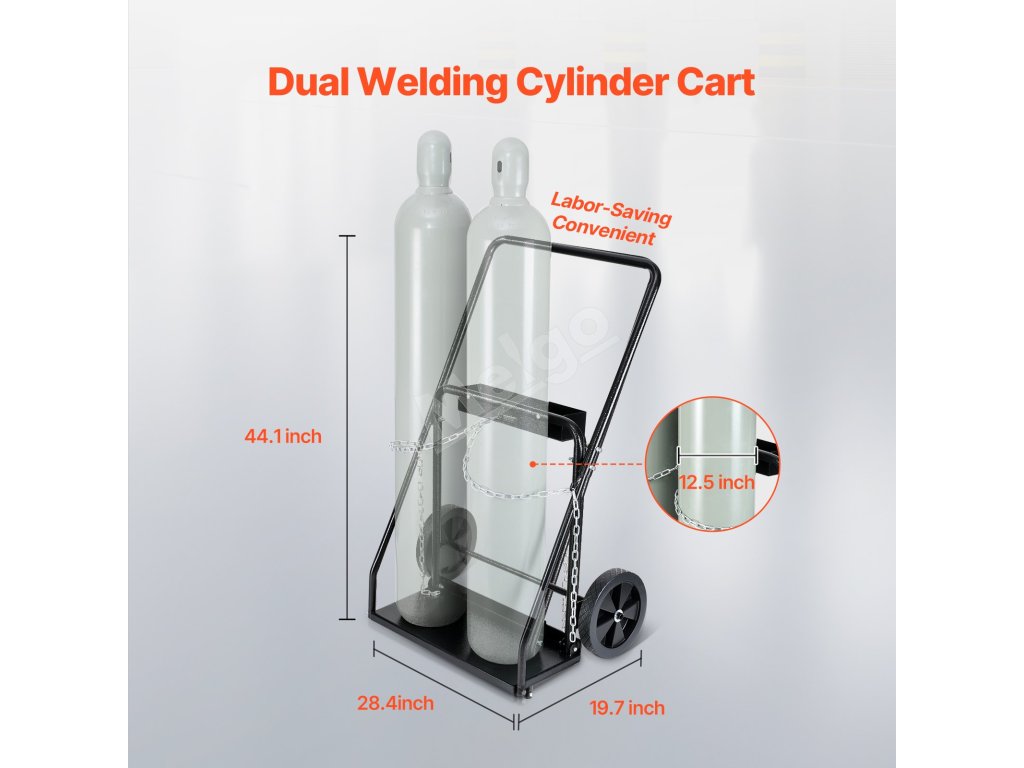 Vozík na zváracie fľaše 440lbs, 10-inch kolesá, pre 2×12.5-inch fľaše