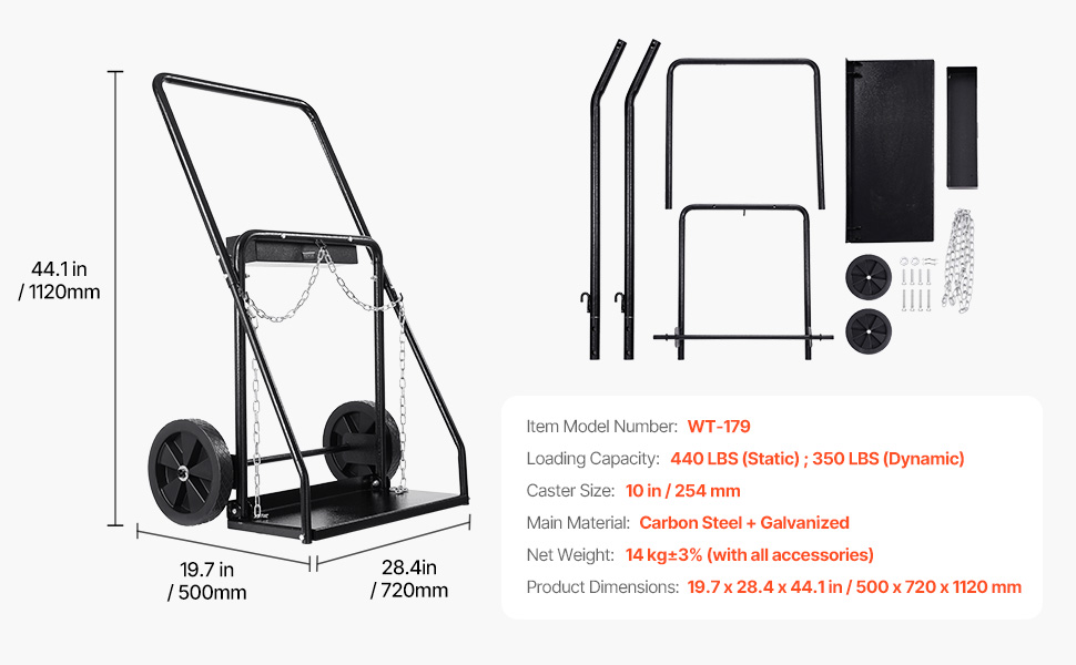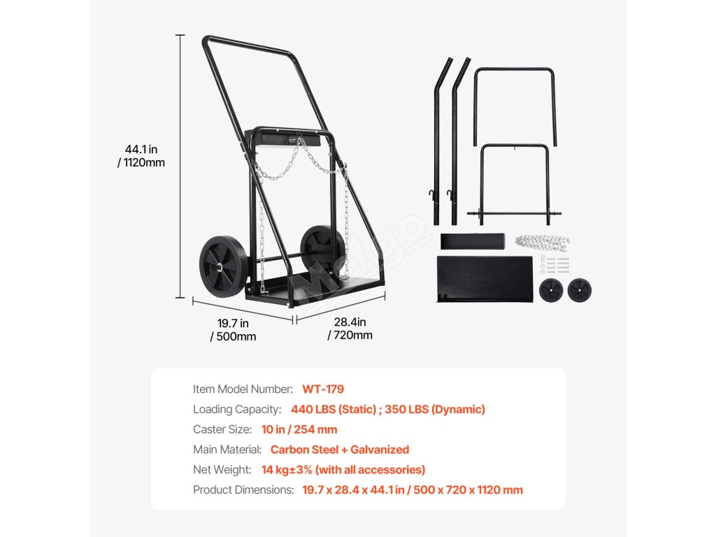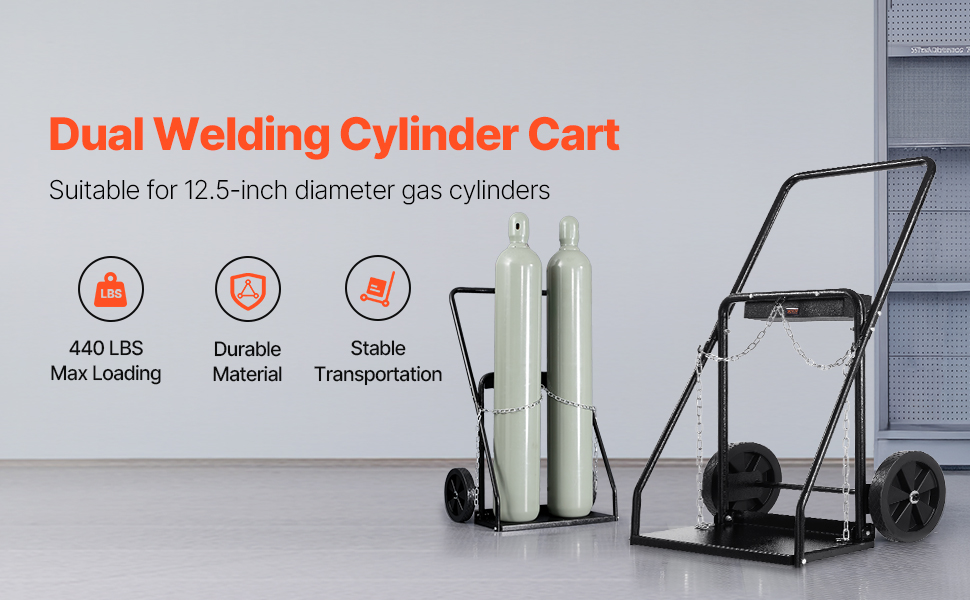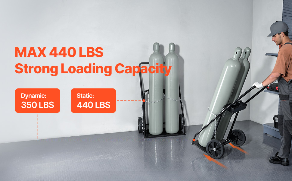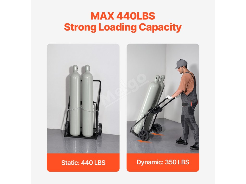 Tento vozík na plynové nádrže sa vyznačuje výnimočnou konštrukčnou pevnosťou a nosnosťou. Má statickú nosnosť 440 libier a dynamickú nosnosť 350 libier, pričom pojme dve fľaše s maximálnym priemerom 12,5 palca.