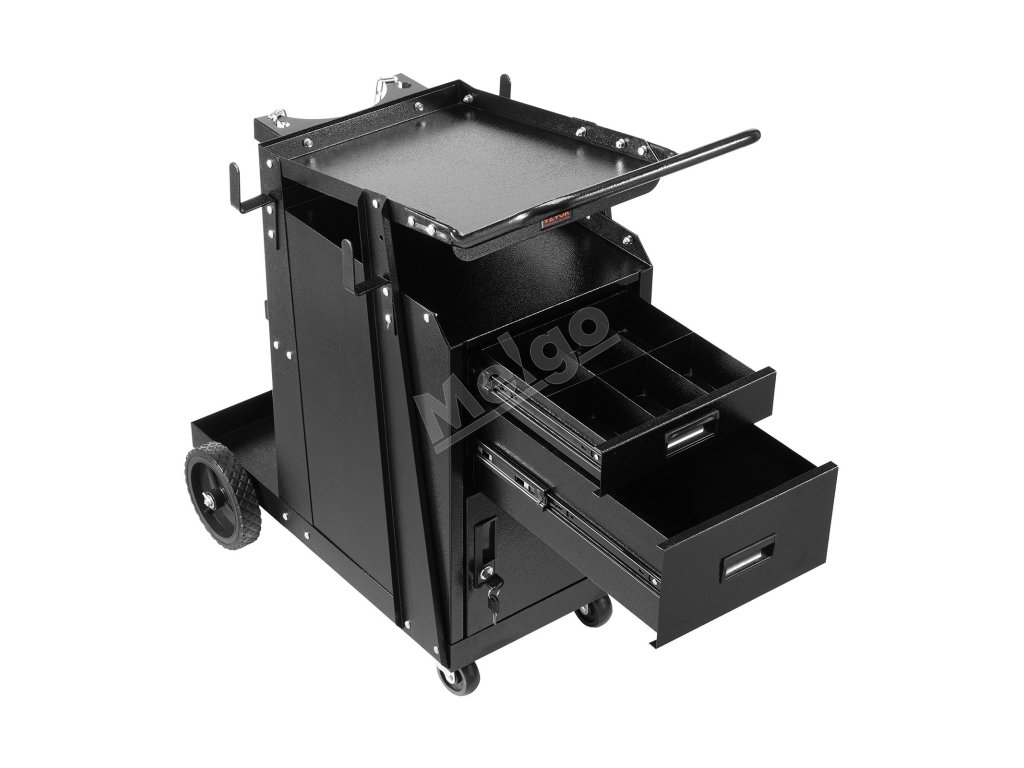 Vozík na zváračku 2 zásuvky uzamykateľná skrinka, 360° kolieska