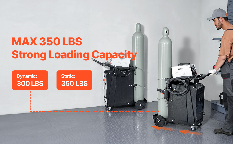 Náš zvárací vozík MIG poskytuje statickú nosnosť 350 libier a dynamickú nosnosť 300 libier, čím bez námahy podporuje rôzne zváracie zariadenia a nástroje. Či už ide o skladovanie alebo prepravu, poskytuje stabilný a efektívny výkon a spĺňa požiadavky profesionálnych úloh.