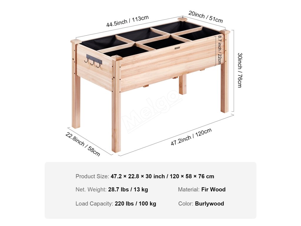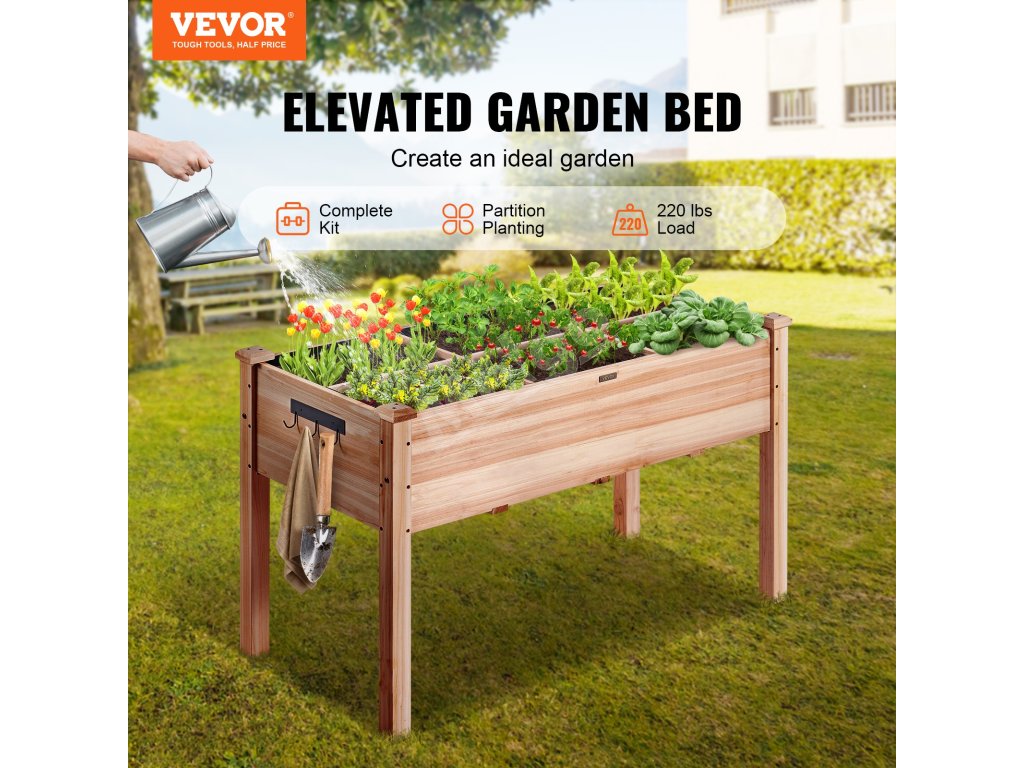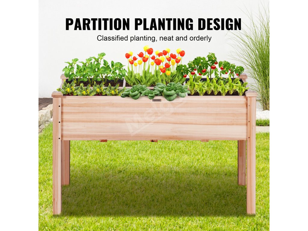 Tento drevený vyvýšený záhradný záhon VEVOR je ideálny pre rôzne rastliny. Jeho odnímateľná priečka vám umožňuje vysádzať rôzne druhy rastlín v jednom boxe, takže je univerzálny na bylinky, zeleninu a kvety. Ak chcete pestovať jeden druh rastliny, stačí odstrániť priečku. Vďaka tejto flexibilite je ideálny na akýkoľvek druh záhradkárčenia. Jeho veľké rozmery 47,2 x 22,8 palca poskytujú dostatok priestoru pre začiatočníkov aj skúsených záhradkárov. Vytvorte si záhradu svojich snov s ľahkosťou, pretože tento box na sadenie pomôže všetkému krásne rásť.