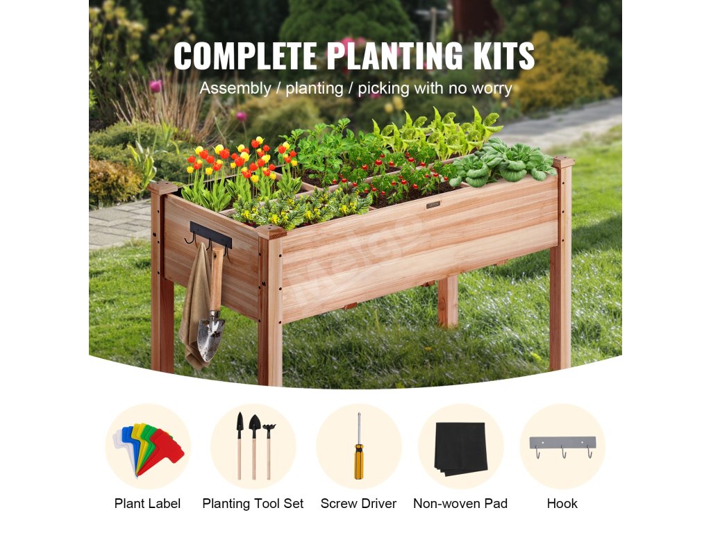 Tento vyvýšený záhradný záhon sa dodáva so všetkým, čo potrebujete. Jeho balenie obsahuje 10 štítkov na sadenie, podložku z netkanej textílie, nástroje na sadenie, hák a skrutkovač, čo znamená, že môžete ihneď začať záhradníčiť bez toho, aby ste museli samostatne kupovať ďalšie nástroje. Jeho priložené nástroje sú ideálne pre začiatočníkov, vďaka čomu je záhradkárčenie jednoduché a zábavné. Štítky vám pomôžu sledovať, čo ste zasadili, zatiaľ čo netkaná podložka pomáha pri odvodňovaní. Začnite svoju záhradnícku cestu so všetkými základnými potrebami, ktoré sú súčasťou balenia.