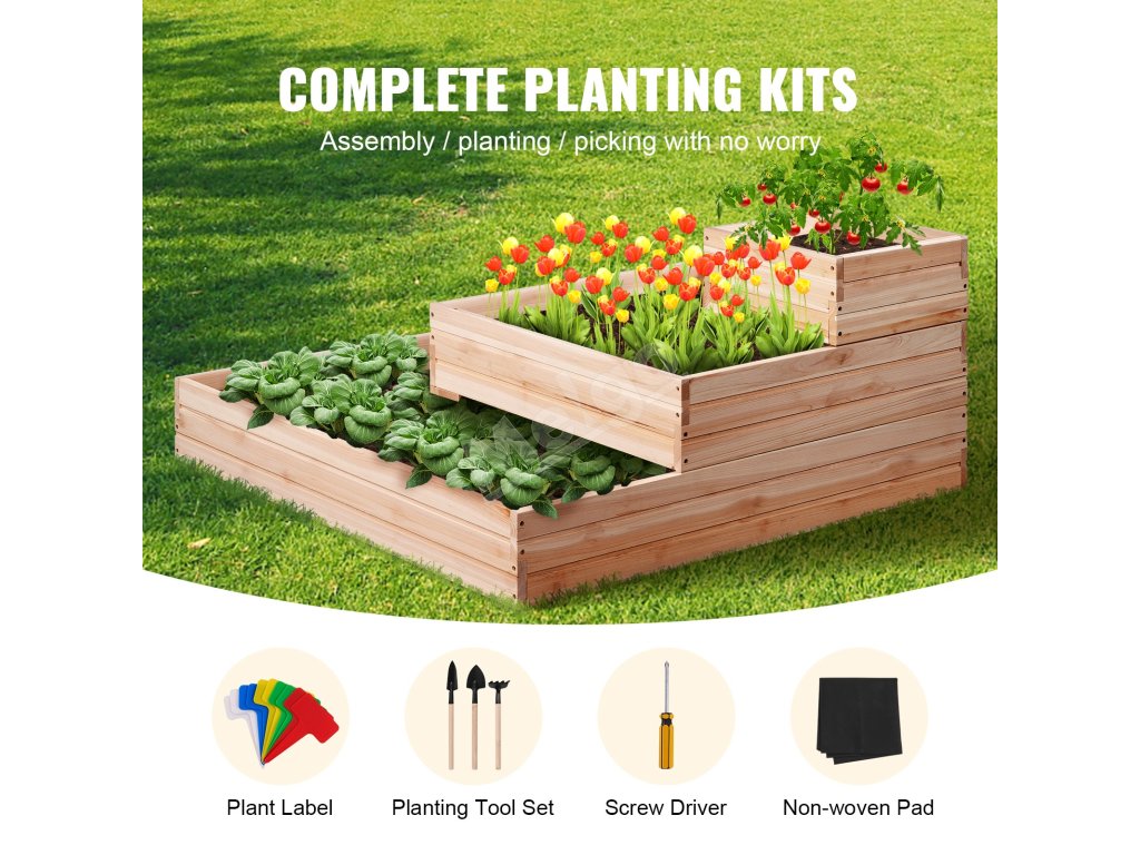 K záhradnému záhonu s rozmermi 44,5 × 44,5 × 20,1 dostanete 10 štítkov na sadenie, podložku z netkanej textílie a puzdro s nástrojmi na sadenie. Tieto nástroje vám uľahčia sadenie a starostlivosť o rastliny. Štítky vám pomôžu sledovať, čo ste zasadili. Podložka z netkanej textílie dodáva ďalšiu vrstvu ochrany. Príslušenstvo VEVOR zvýši váš zážitok zo záhradkárčenia. Spríjemňujú a zefektívňujú život.