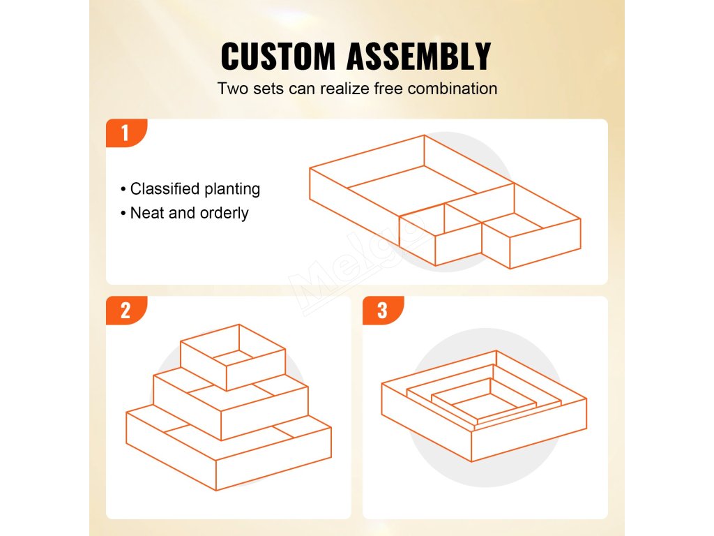 Tento vyvýšený záhradný kvetináč je ideálny pre tých, ktorí radi experimentujú s usporiadaním záhrady. Dodáva záhradkárčeniu zábavný a kreatívny prvok. Môžete si rozšíriť plochu na sadenie a pestovať viac rastlín. Vďaka tejto všestrannosti je vynikajúcou voľbou pre záhradkárov všetkých úrovní.