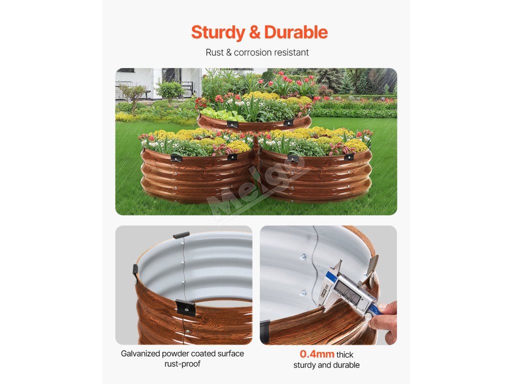 Náš vyvýšený záhradný box, vyrobený z robustného kovového rámu s povrchovou úpravou odolnou proti korózii, zaručuje odolnosť a časom zabraňuje korózii.