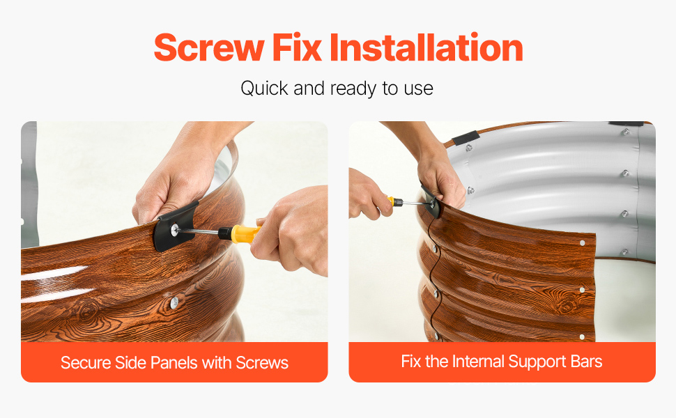 Tento vyvýšený kvetinový záhon, navrhnutý na jednoduchú montáž, možno rýchlo zostaviť pomocou skrutiek. Nie sú potrebné žiadne zložité nástroje, vďaka čomu je vhodný pre začiatočníkov.
