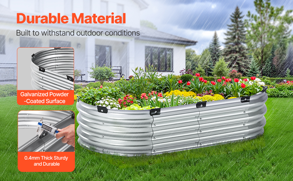 Pozinkovaný kovový vyvýšený záhon oválny 4×2×1 ft s otvoreným dnom