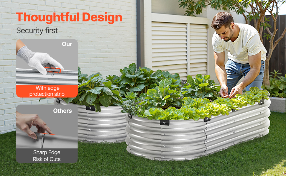 Vyvýšený záhon obsahuje zrolované okraje s ochrannými pásmi a dodáva sa s párom rukavíc na dodatočnú ochranu rúk.