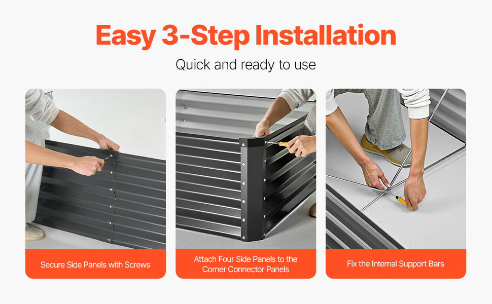 Tento vyvýšený záhon, navrhnutý na jednoduchú montáž, možno rýchlo zostaviť pomocou skrutiek. Nie sú potrebné žiadne zložité nástroje, vďaka čomu je vhodný pre začiatočníkov.